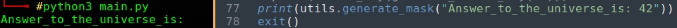 assert((mask_master_key(derive_key(generate_random_key(40)), utils.generate_mask(flag[11:-1]))) == ">\x13R\x17>\x11\x18V\tQ\x0f>\x03\x18\x15R\x02Q\x05R")What the utils.generate_mask function does is pretty simple after you try to run it with your own input. You don't really have to reverse engineer the code in the function.